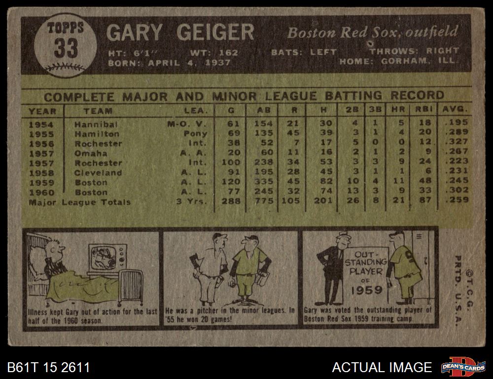1961 Topps #33 Gary Geiger 2 - GOOD