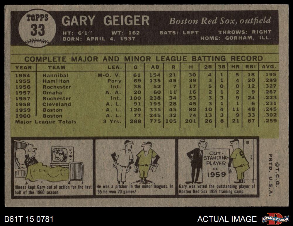 1961 Topps #33 Gary Geiger 5 - EX