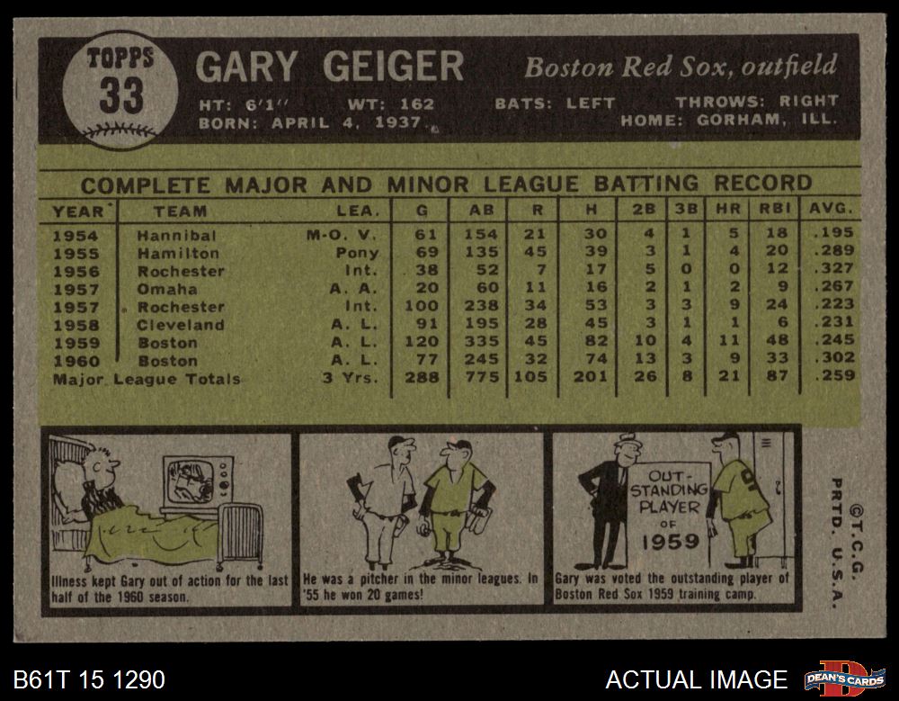 1961 Topps #33 Gary Geiger 6 - EX/MT