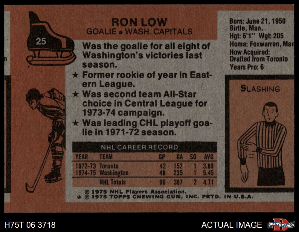 1975 Topps #25 Ron Low 4 - VG/EX