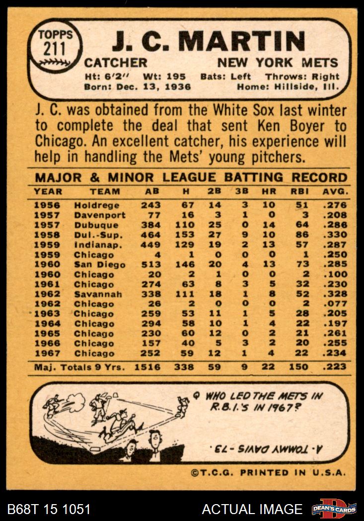 1968 Topps #211 J.C. Martin 6 - EX/MT