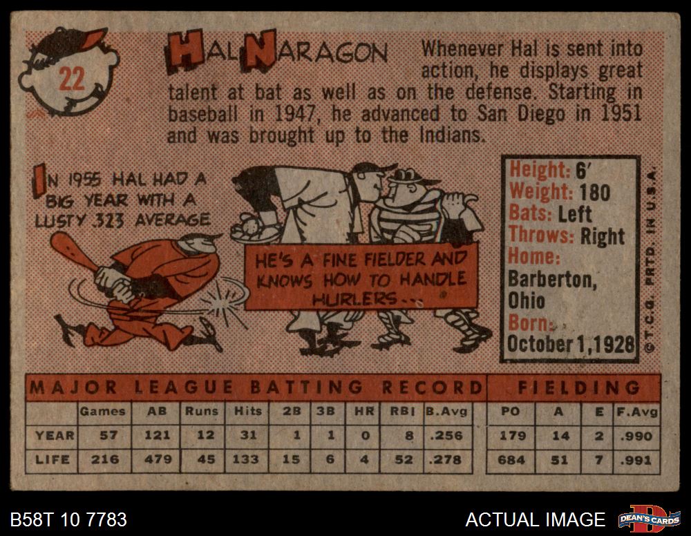 1958 Topps #22 Hal Naragon 3 - VG