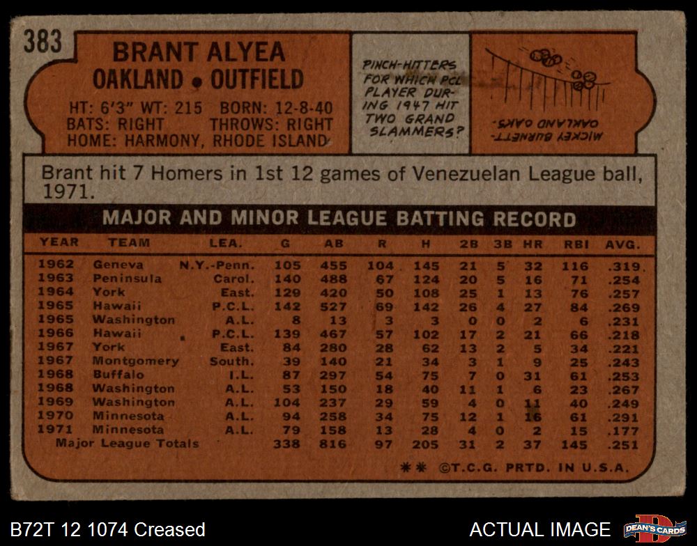 1972 Topps Baseball Cards (12,986 available)1972 Topps Athletics (1,089 available)