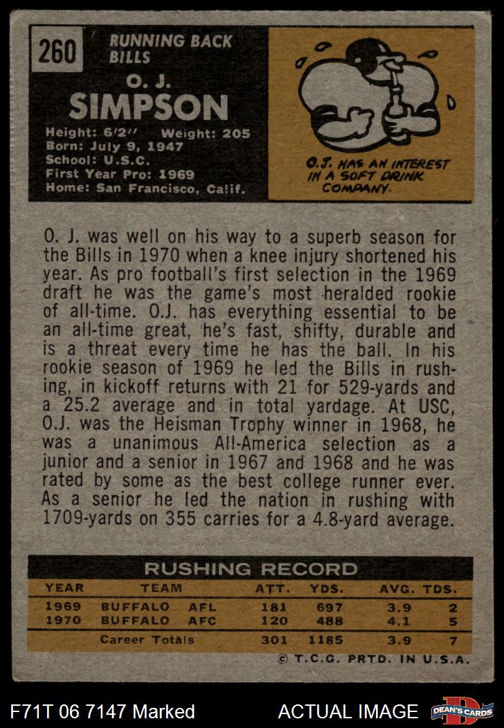 1971 Topps #260 O.J. Simpson 1.5 - FAIR