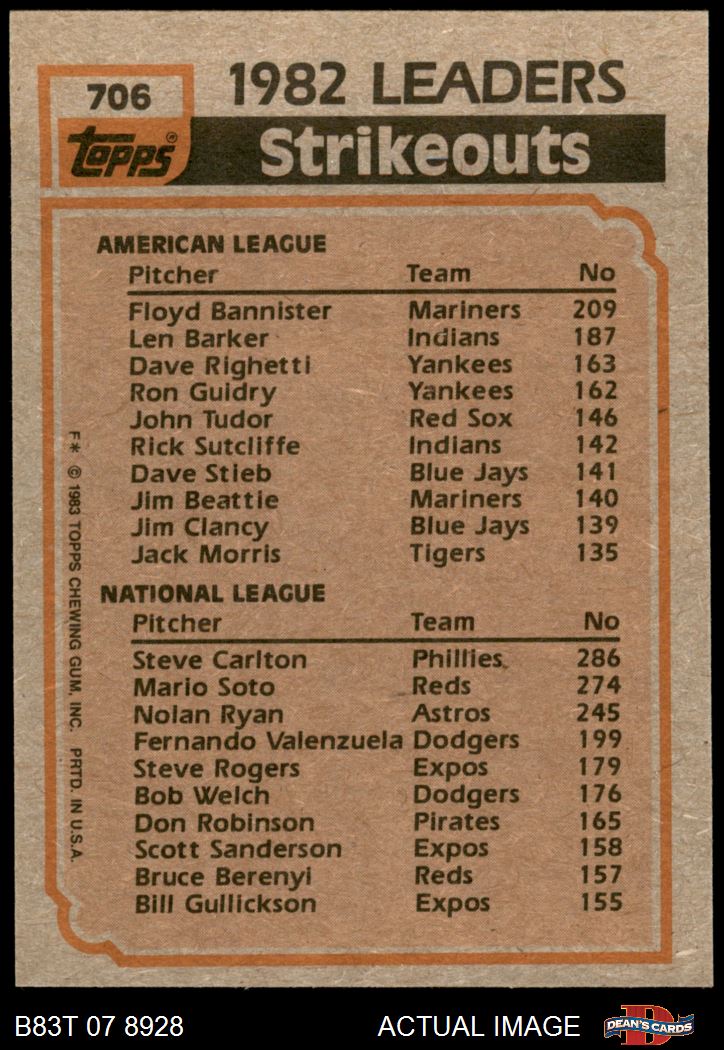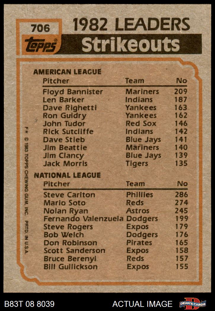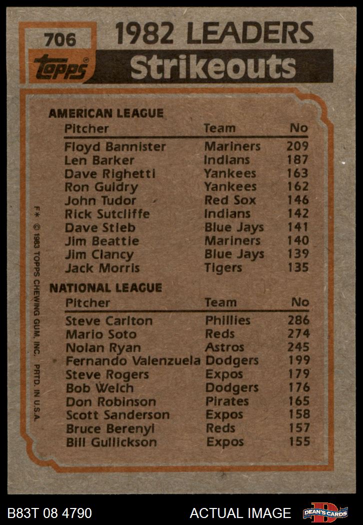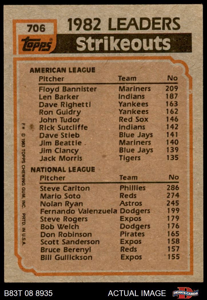 1983 Topps #706 - Steve Carlton / Floyd Bannister Strikeout Leaders 7 - NM