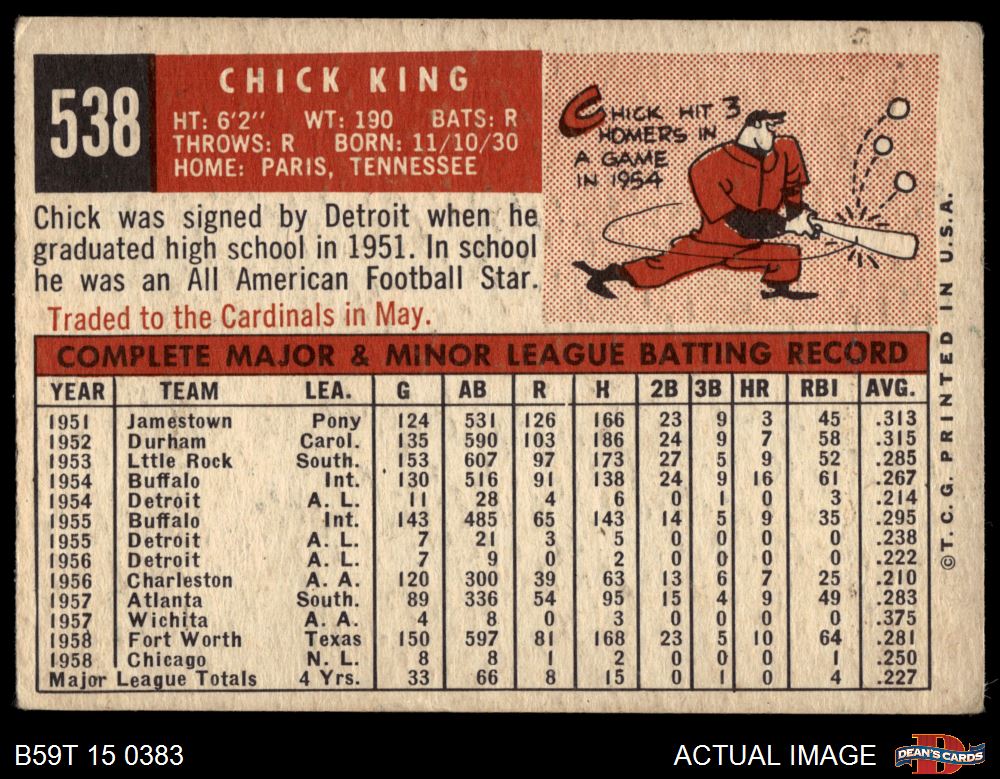 1959 Topps #538 Chick King 3 - VG