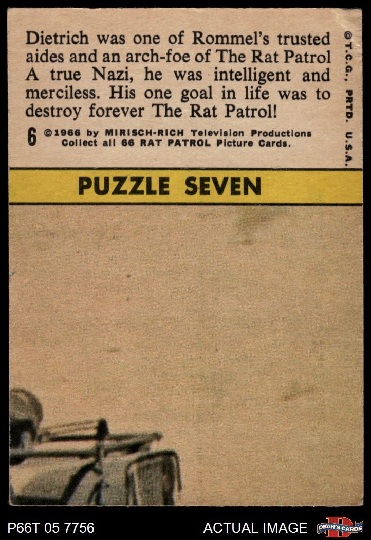 1966 Topps Rat Patrol #6 Dietrich Was One of Rommel's Trusted Aides