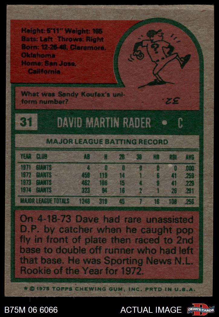 1975 Topps Mini #31 Dave Rader 4 - VG/EX