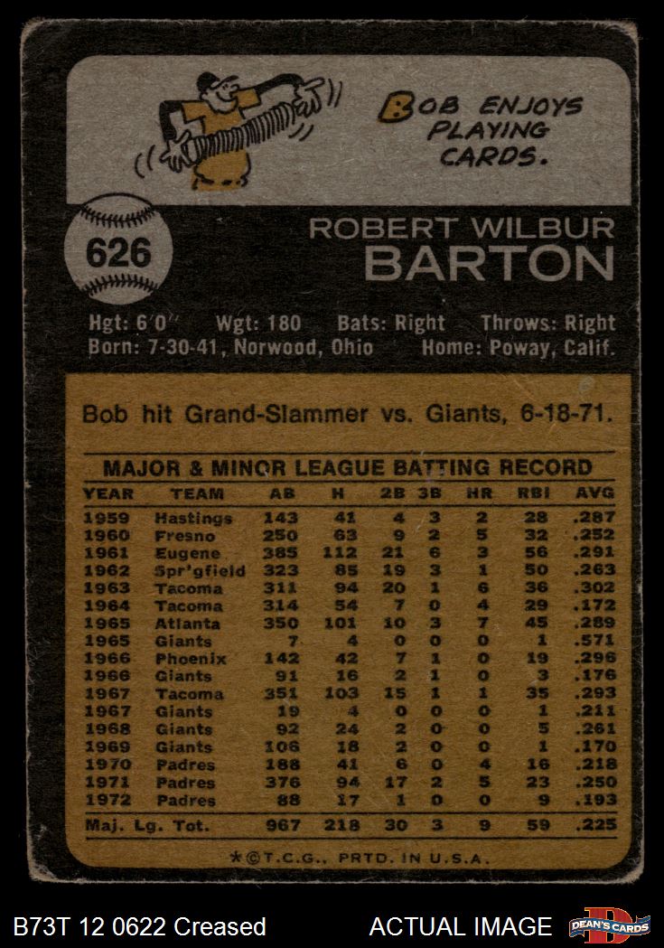 1973 Topps #626 Bob Barton 1 - POOR