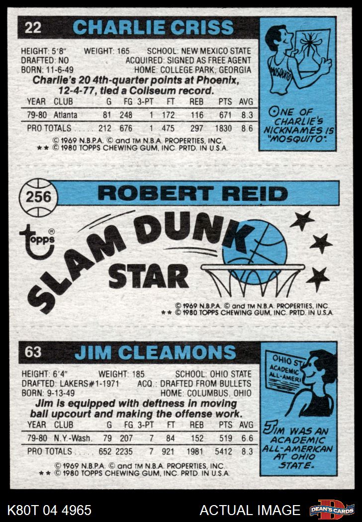 1980 Topps - Jim Cleamons / Robert Reid / Charlie Criss 63 / 256 / 22 8 - NM/MT