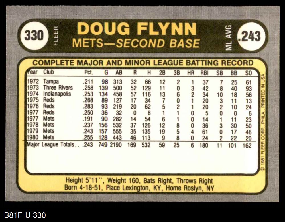 1981 Fleer #330 Doug Flynn 8 - NM/MT