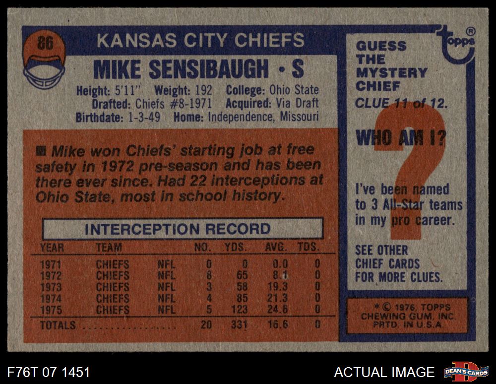 1976 Topps Football Cards (7,272 available)1976 Topps Chiefs (281 available)
