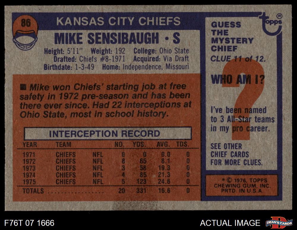 1976 Topps #86 Mike Sensibaugh 4 - VG/EX