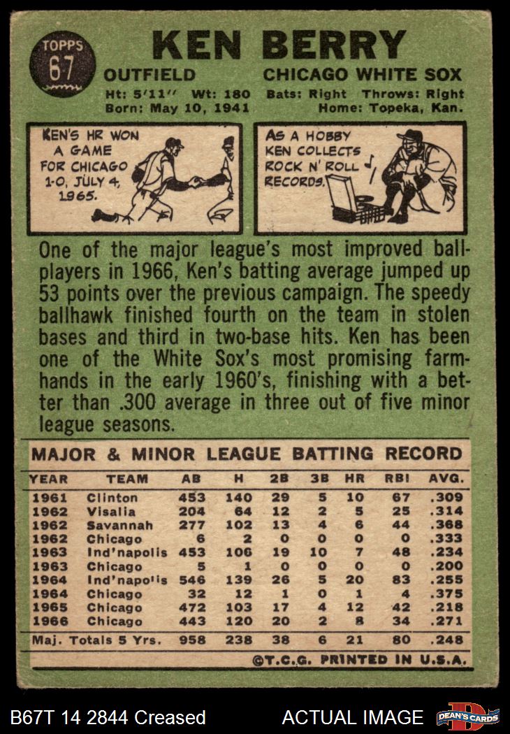 1967 Topps #67 Ken Berry 2 - GOOD