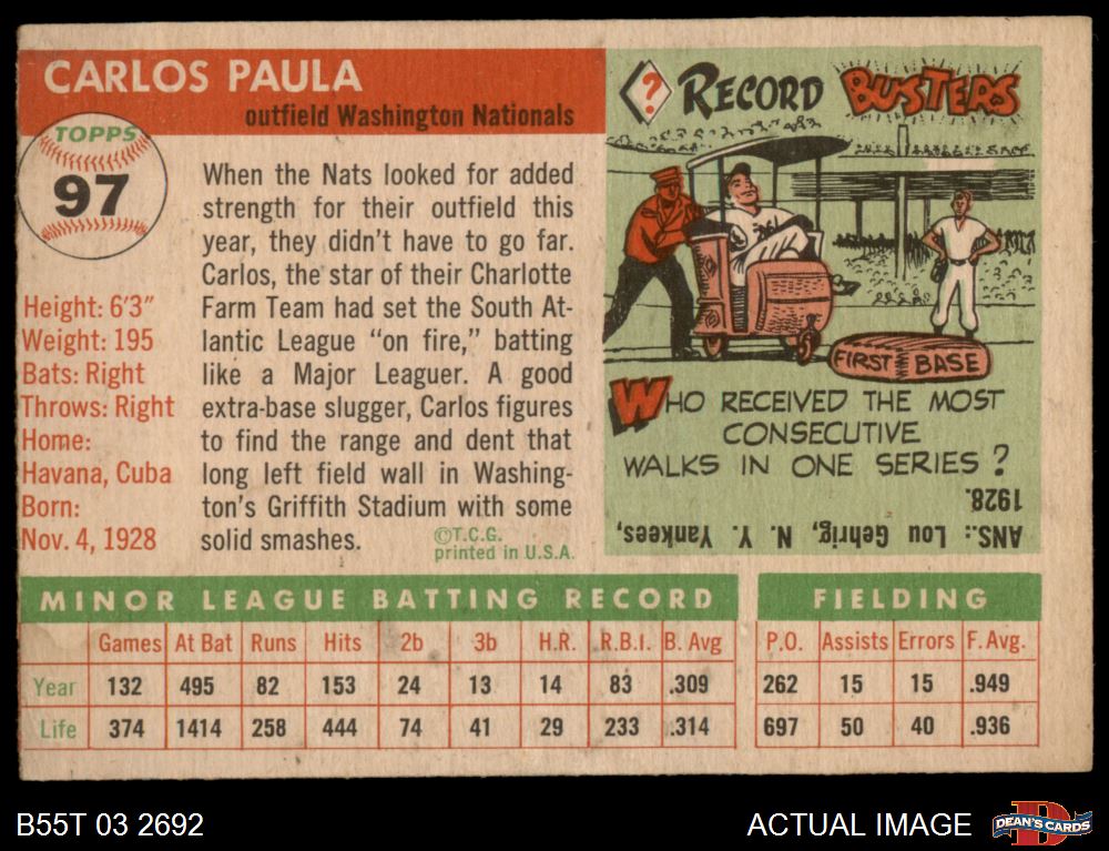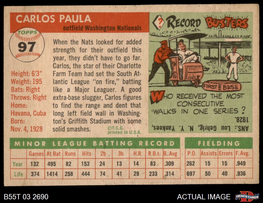 1955 Topps #97 Carlos Paula 1.5 - FAIR