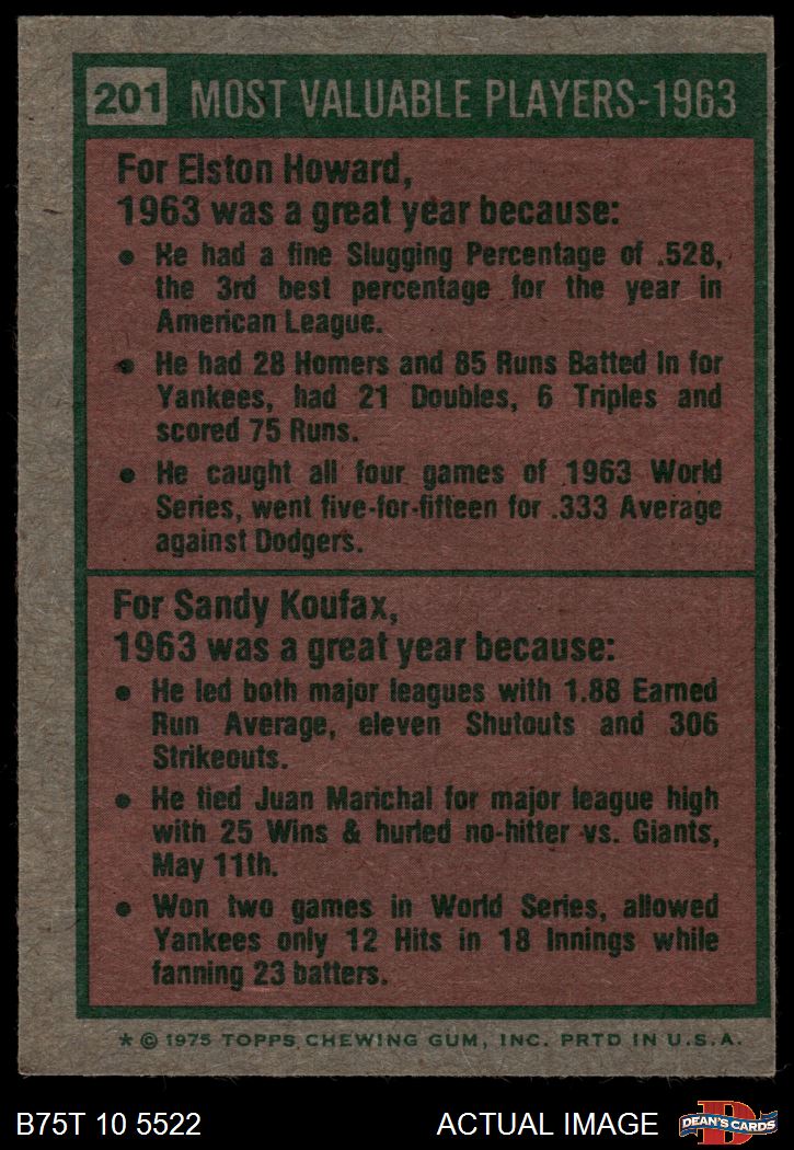 1975 Topps #201 - Sandy Koufax / Elston Howard 1963 MVPs 2 - GOOD