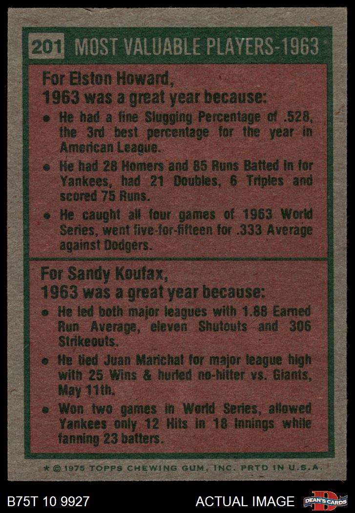 1975 Topps #201 - Sandy Koufax / Elston Howard 1963 MVPs 6 - EX/MT