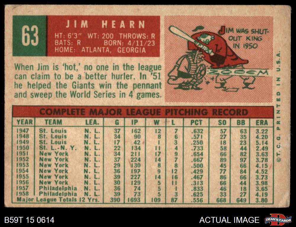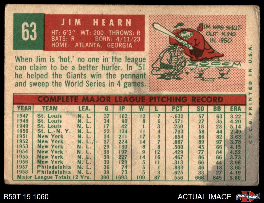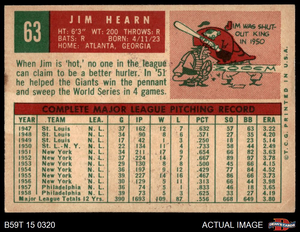 1959 Topps #63 Jim Hearn 1.5 - FAIR