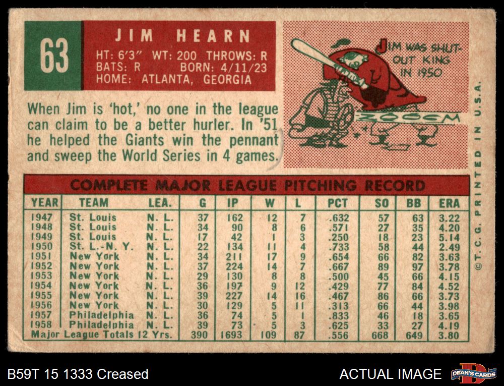 1959 Topps #63 Jim Hearn 2 - GOOD