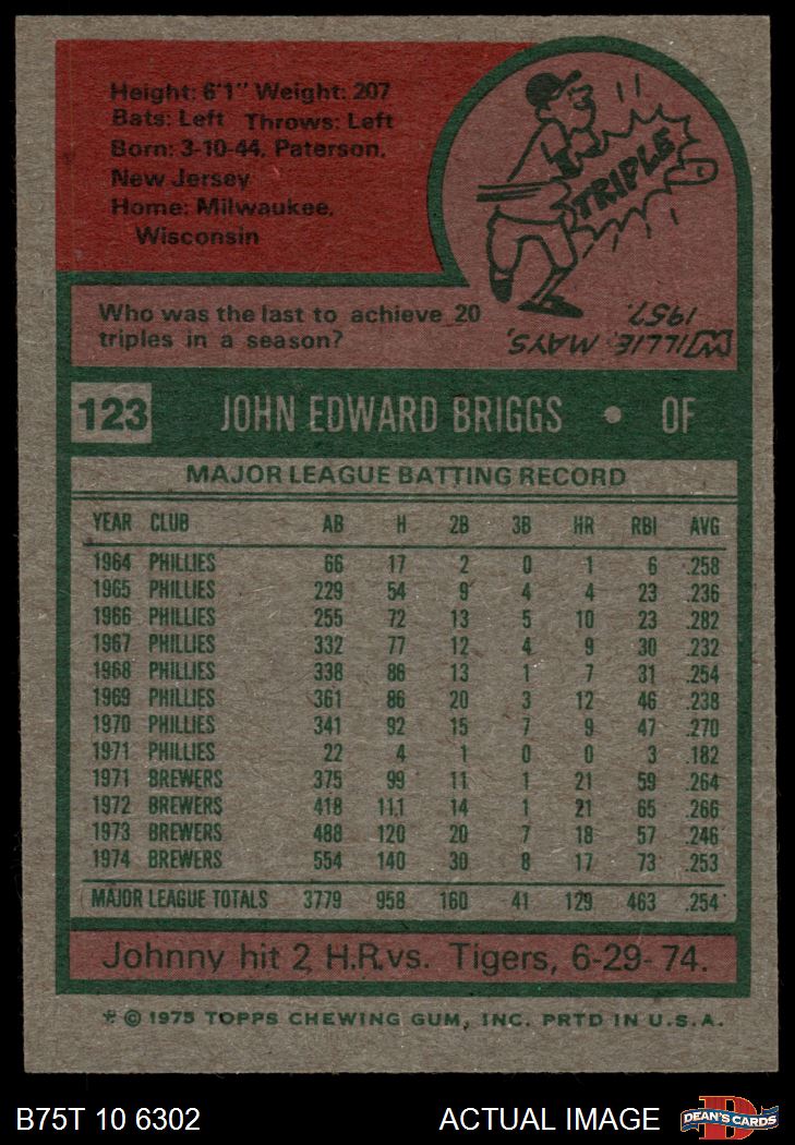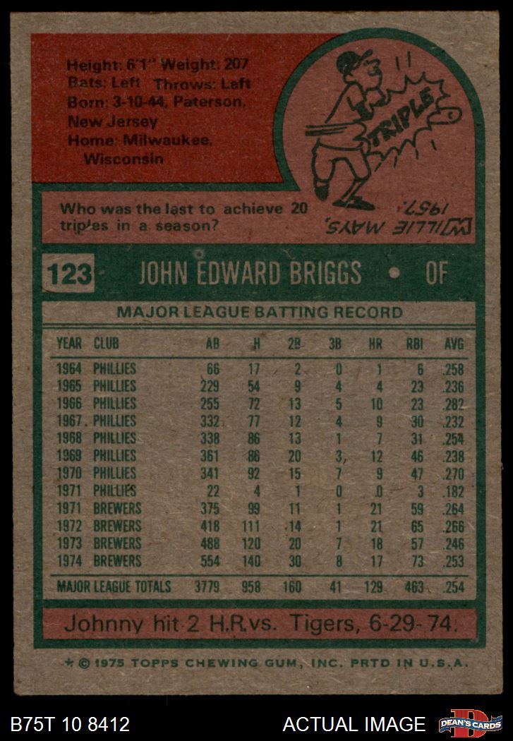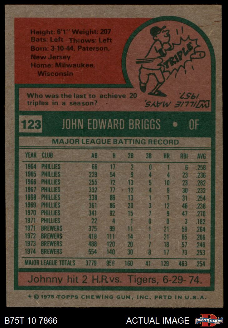 1975 Topps #123 Johnny Briggs