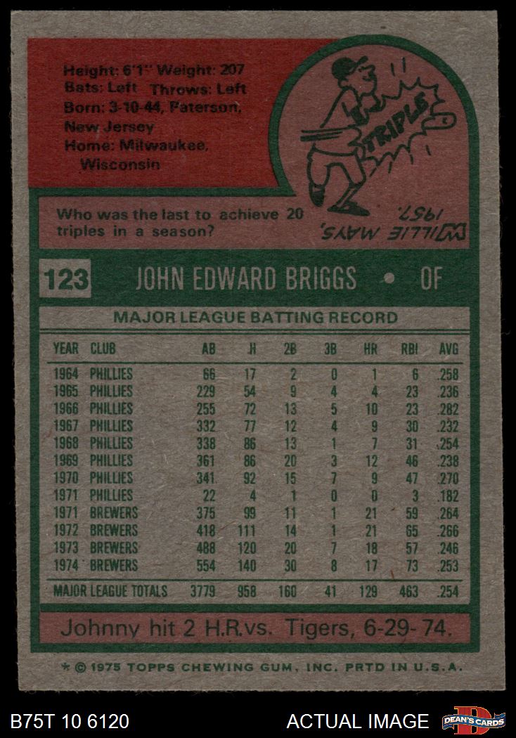 1975 Topps #123 Johnny Briggs 5.5 - EX+