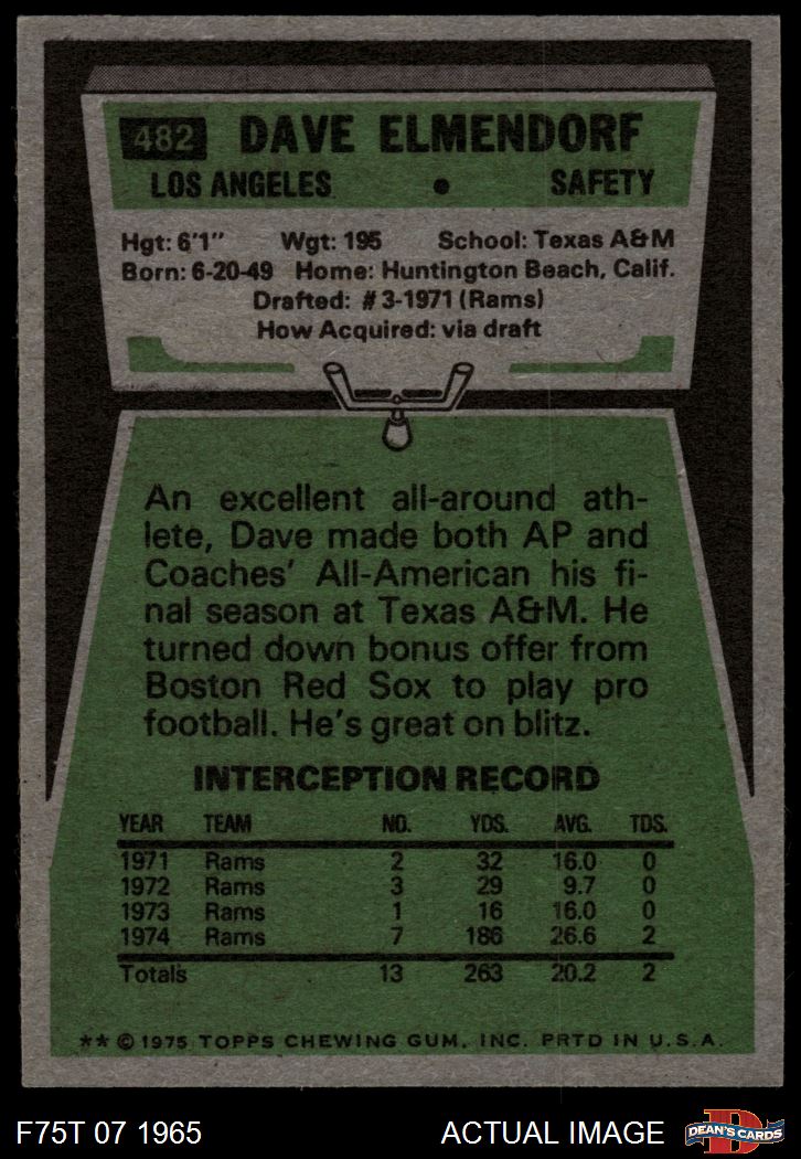 1975 Topps #482 Dave Elmendorf 7.5 - NM+