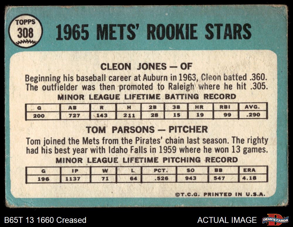 1965 Topps #308  -  Cleon Jones / Tom Parsons Mets Rookies Front Thumbnail