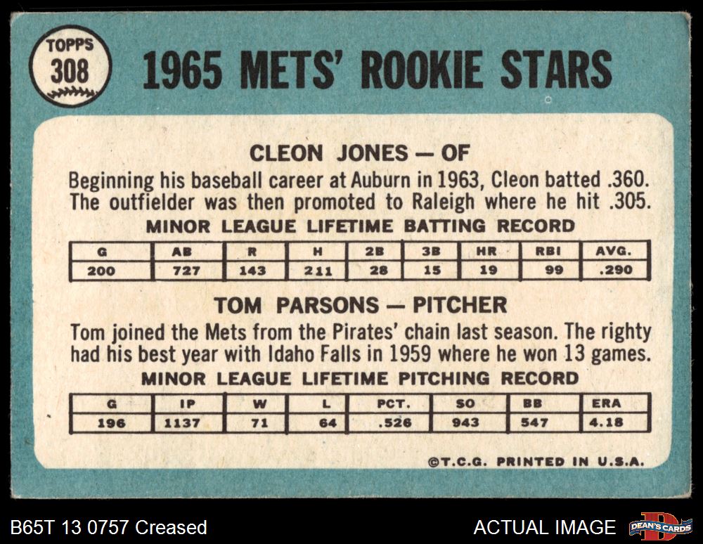 1965 Topps #308  -  Cleon Jones / Tom Parsons Mets Rookies Front Thumbnail