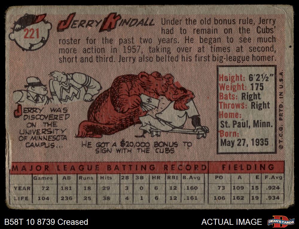 1958 Topps #221 Jerry Kindall 1 - POOR