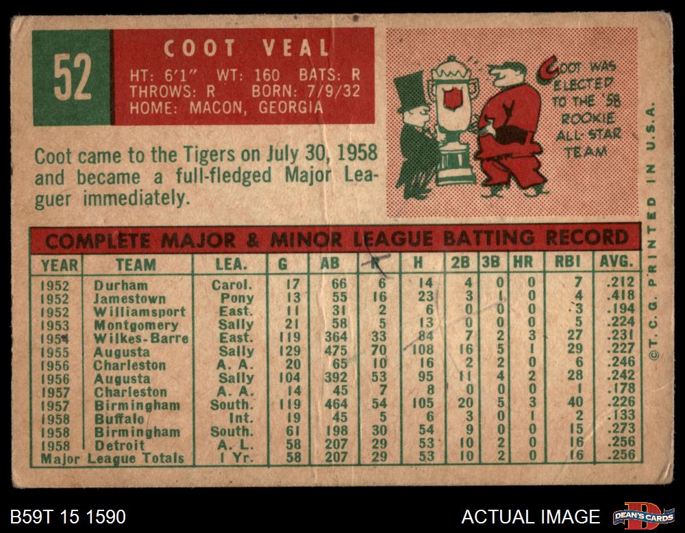 1959 Topps #52 Coot Veal 1.5 - FAIR