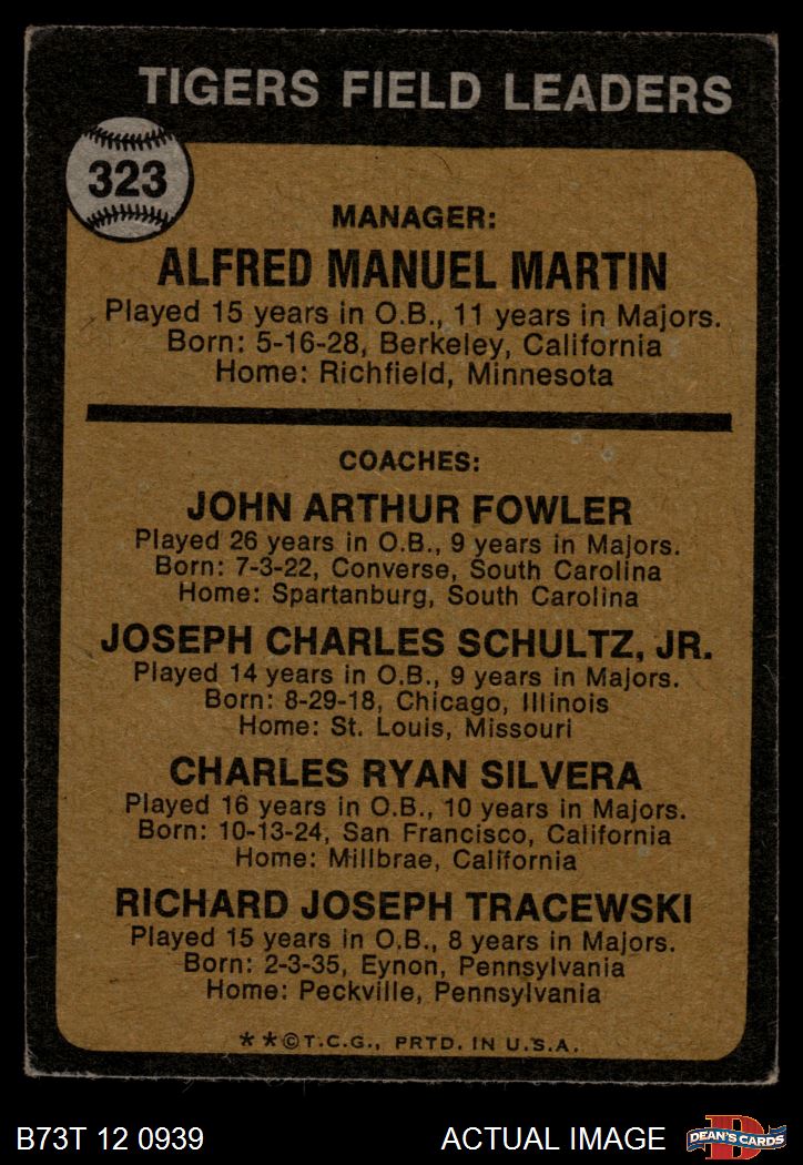 1973 Topps #323 - Billy Martin / Art Fowler / Joe Schultz / Charlie Silvera / Dick Tracewski Tigers Leaders 2 - GOOD
