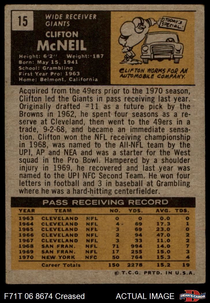 1971 Topps #15 Clifton McNeil 2.5 - GD+