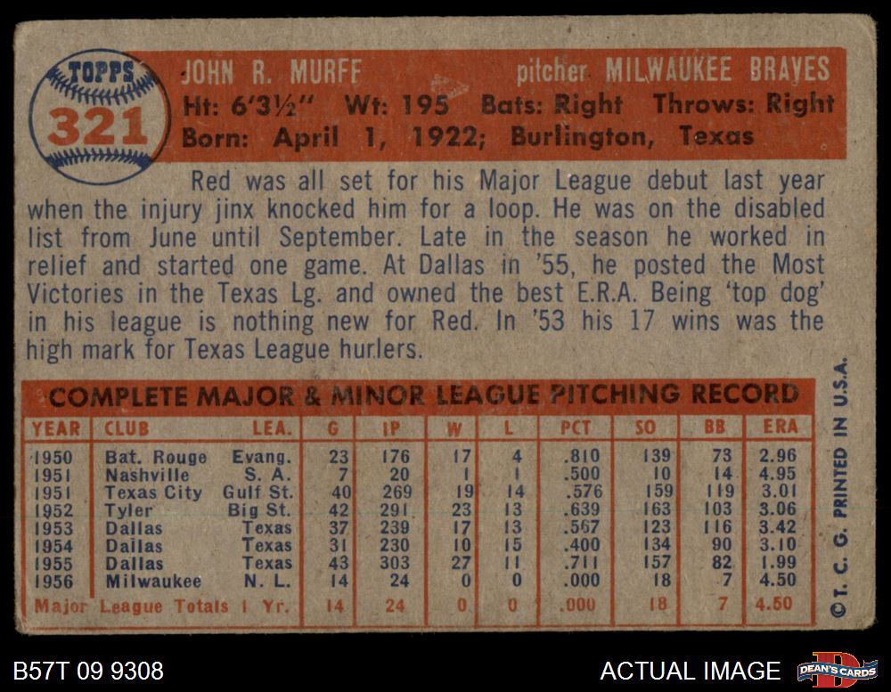 1957 Topps #321 Red Murff 1.5 - FAIR
