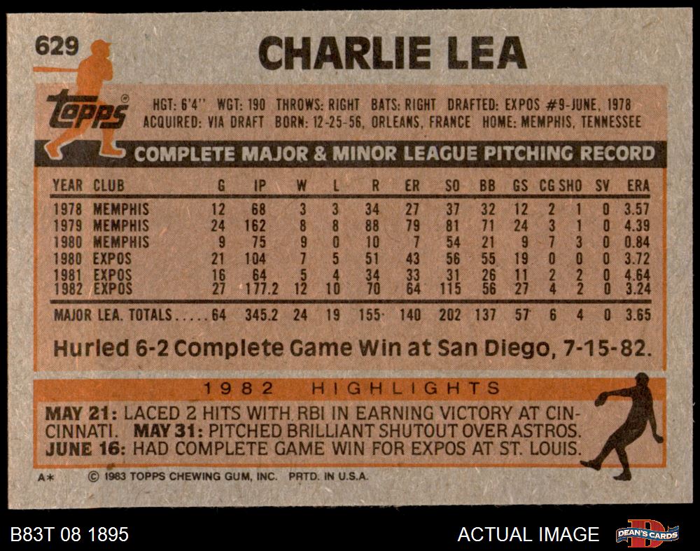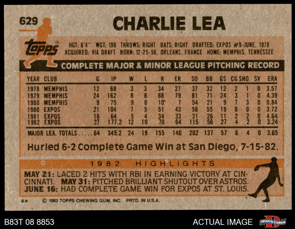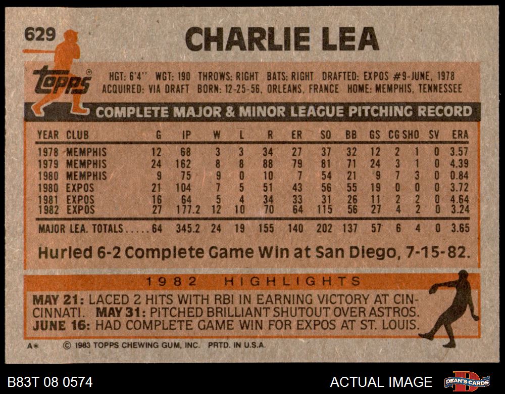 1983 Topps #629 Charlie Lea 8 - NM/MT