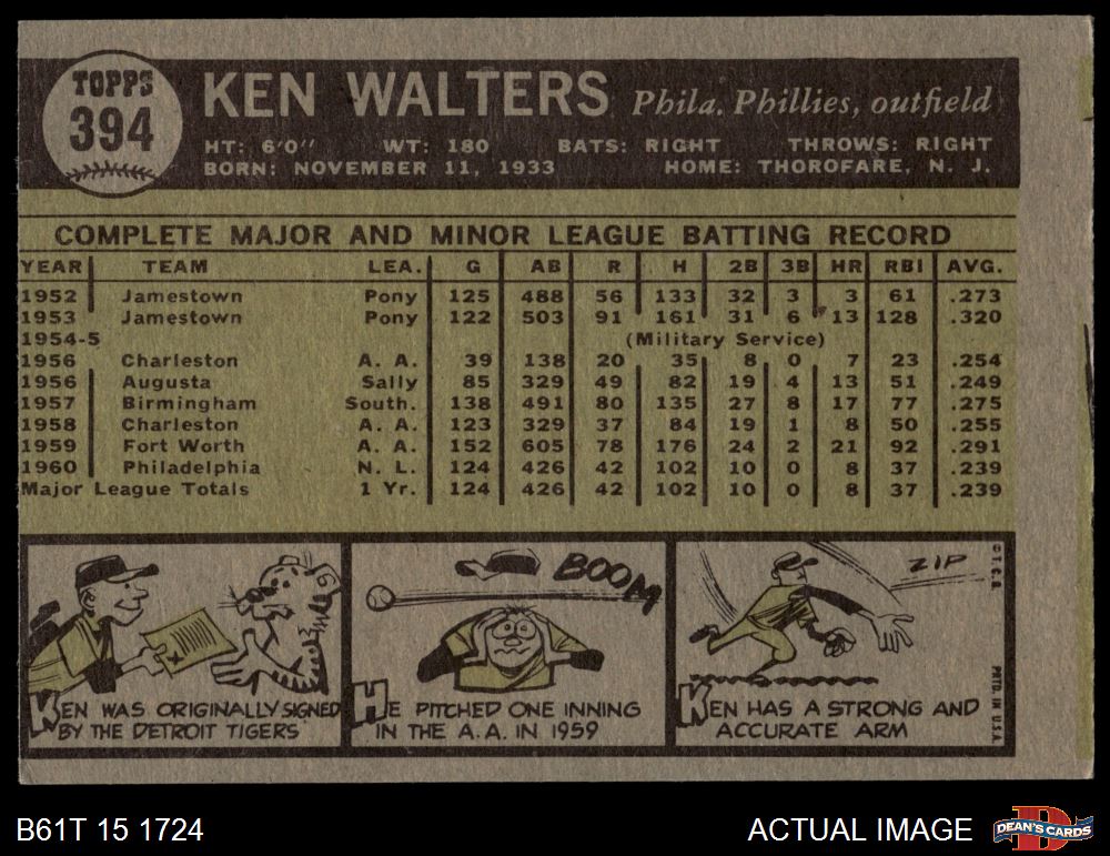 1961 Topps #394 Ken Walters 1.5 - FAIR