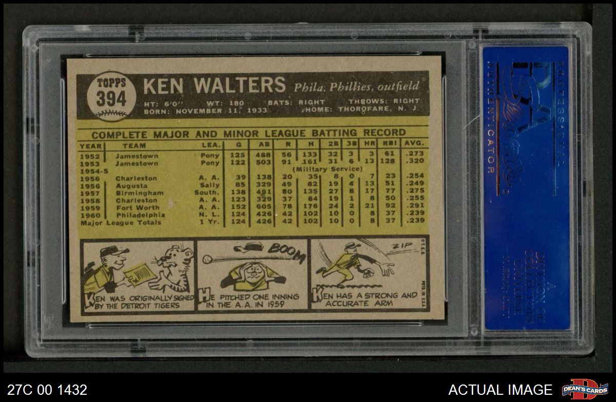 1961 Topps #394 Ken Walters PSA 7 - NM