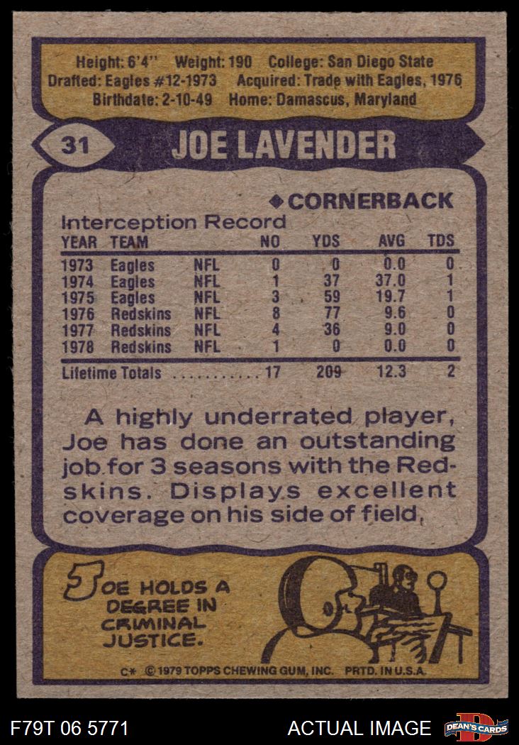 1979 Topps #31 Joe Lavender 7 - NM