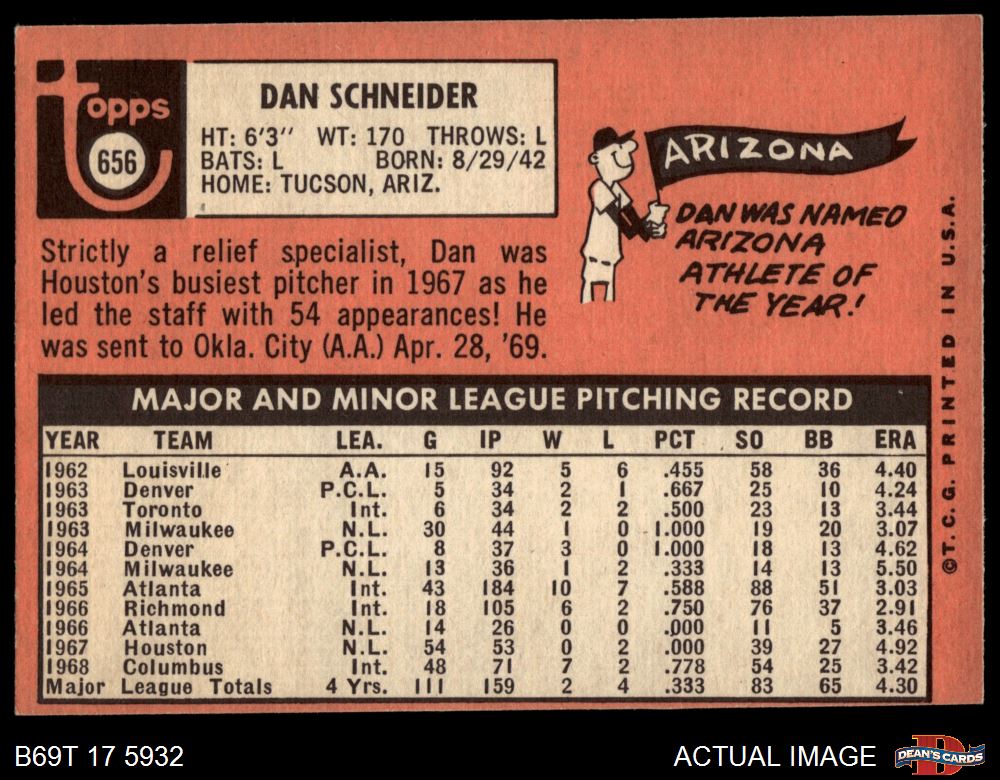 1969 Topps #656 Dan Schneider 5 - EX