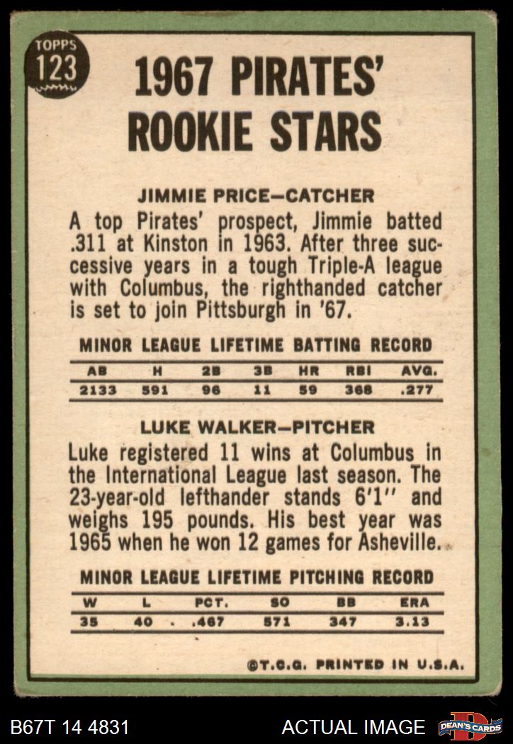 1967 Topps #123 - Luke Walker / Jim Price Pirates Rookies 1 - POOR