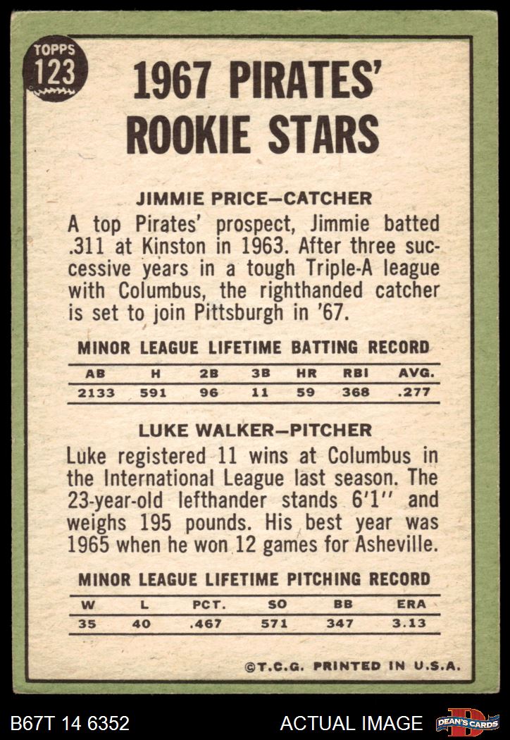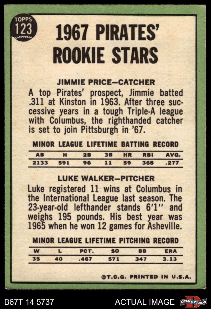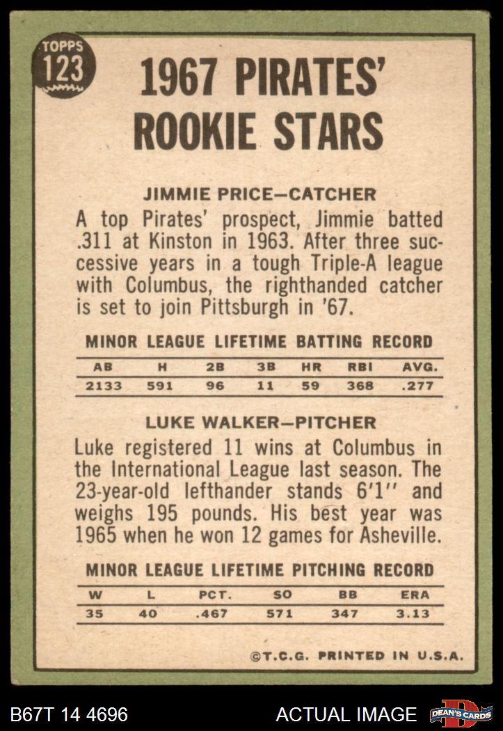 1967 Topps #123 - Luke Walker / Jim Price Pirates Rookies 4 - VG/EX