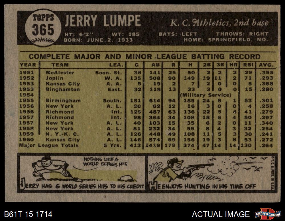 1961 Topps #365 Jerry Lumpe AUTHENTIC