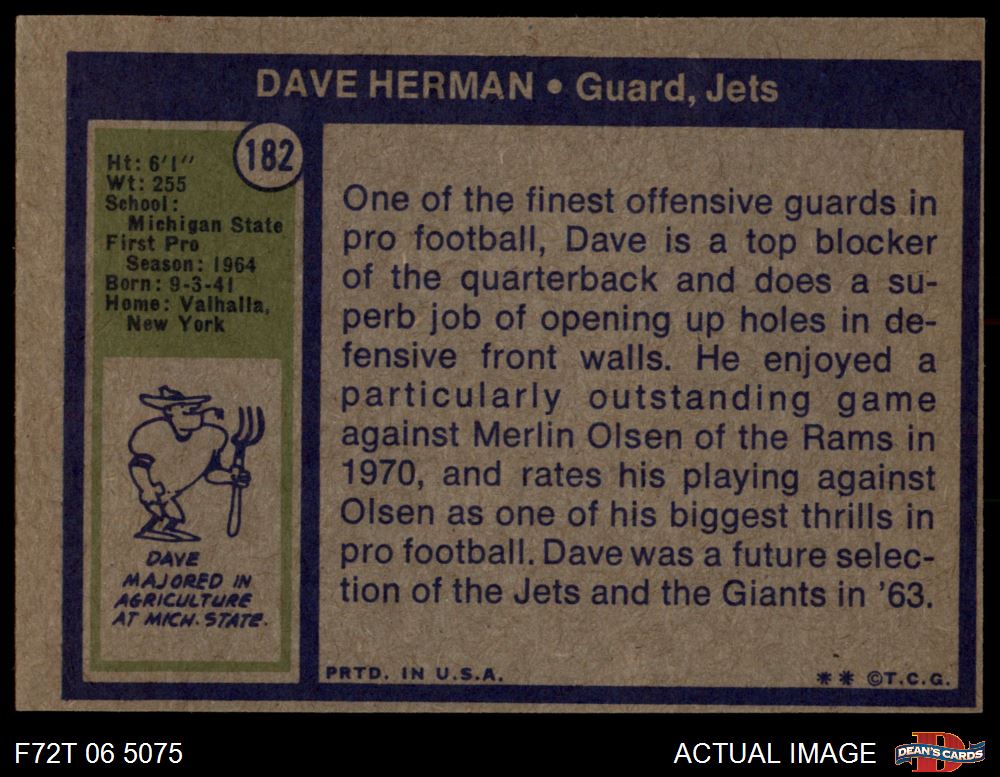 1972 Topps #182 Dave Herman 4 - VG/EX