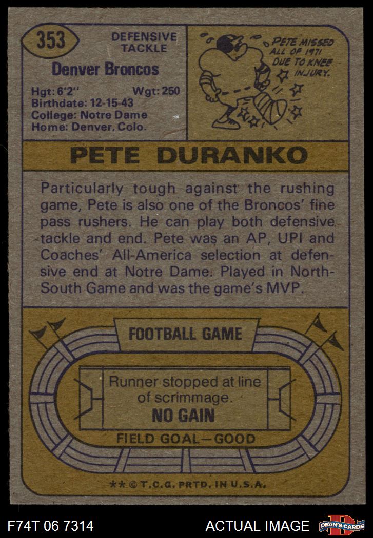 1974 Topps #353 Pete Duranko