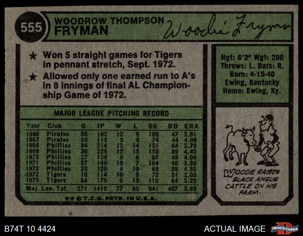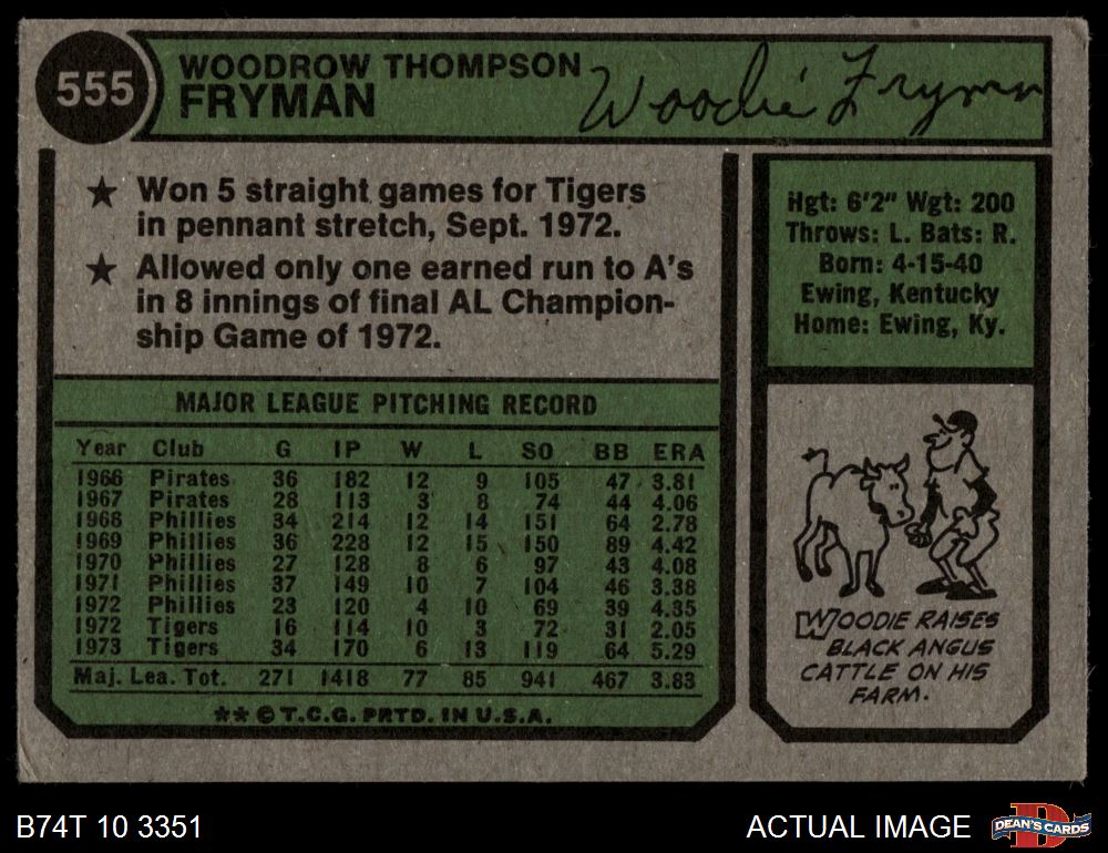 1974 Topps #555 Woodie Fryman 3 - VG