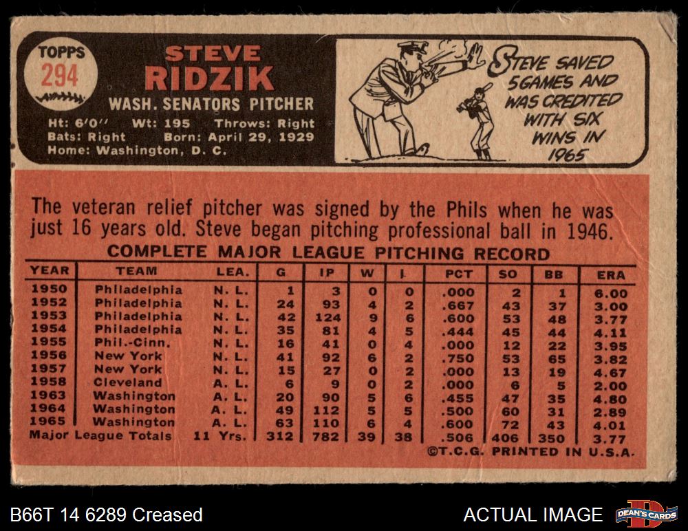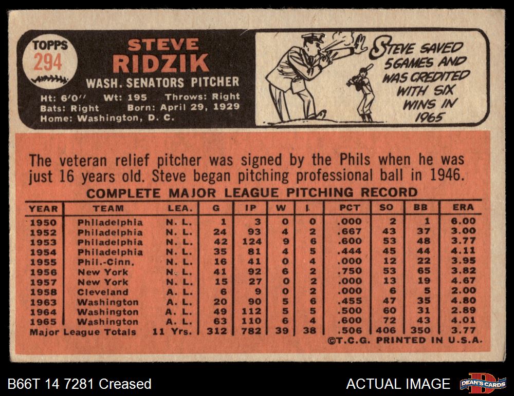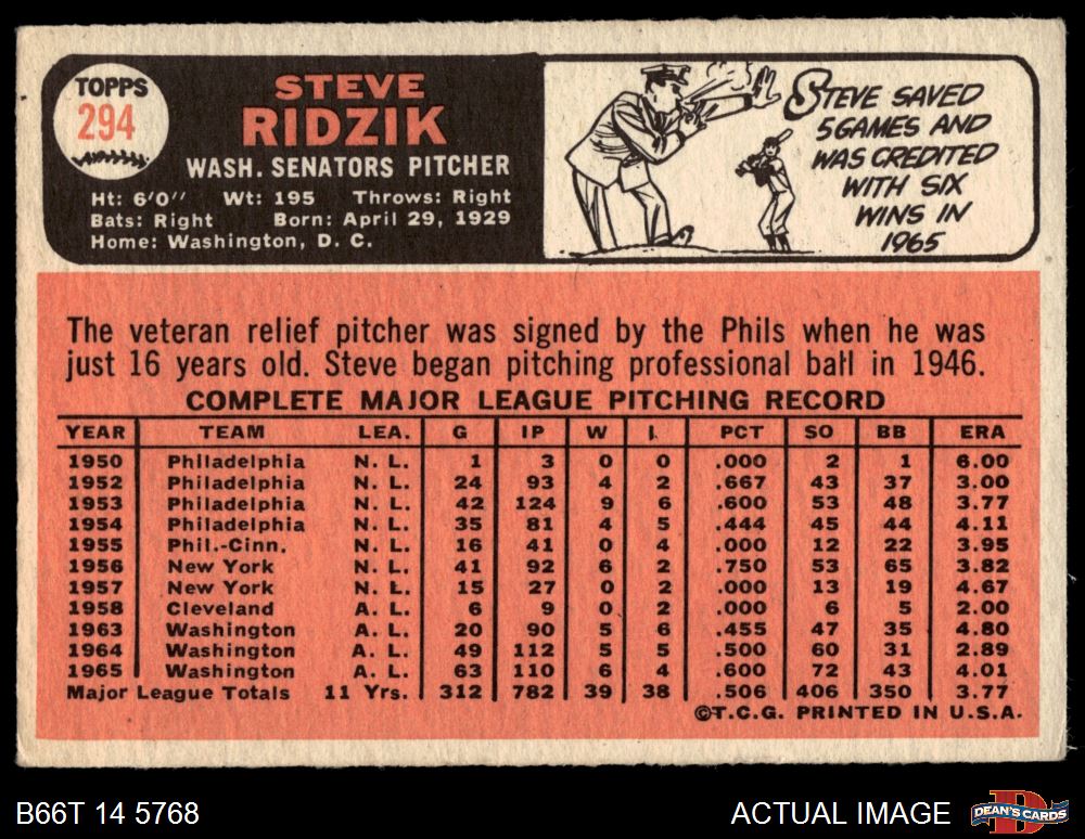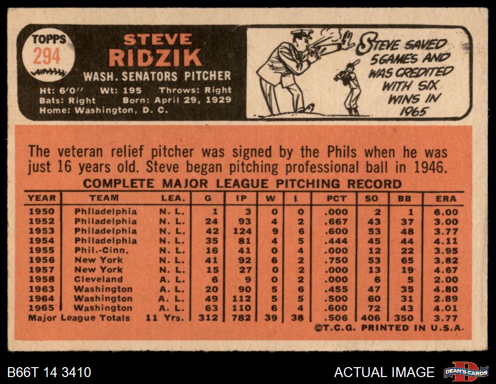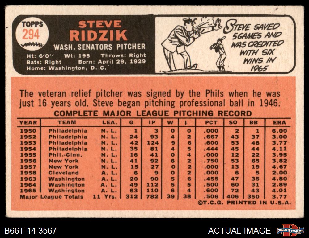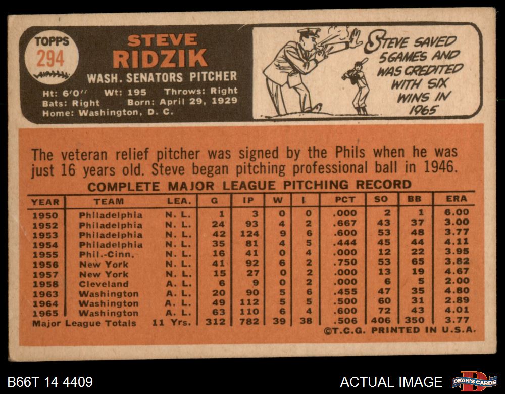 1966 Topps #294 Steve Ridzik