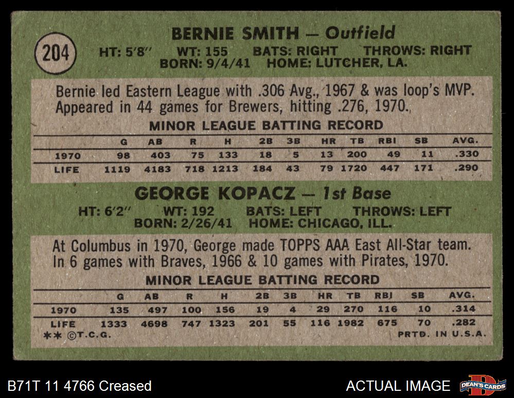 1971 Topps #204 - George Kopacz / Bernie Smith Brewers Rookies 2 - GOOD
