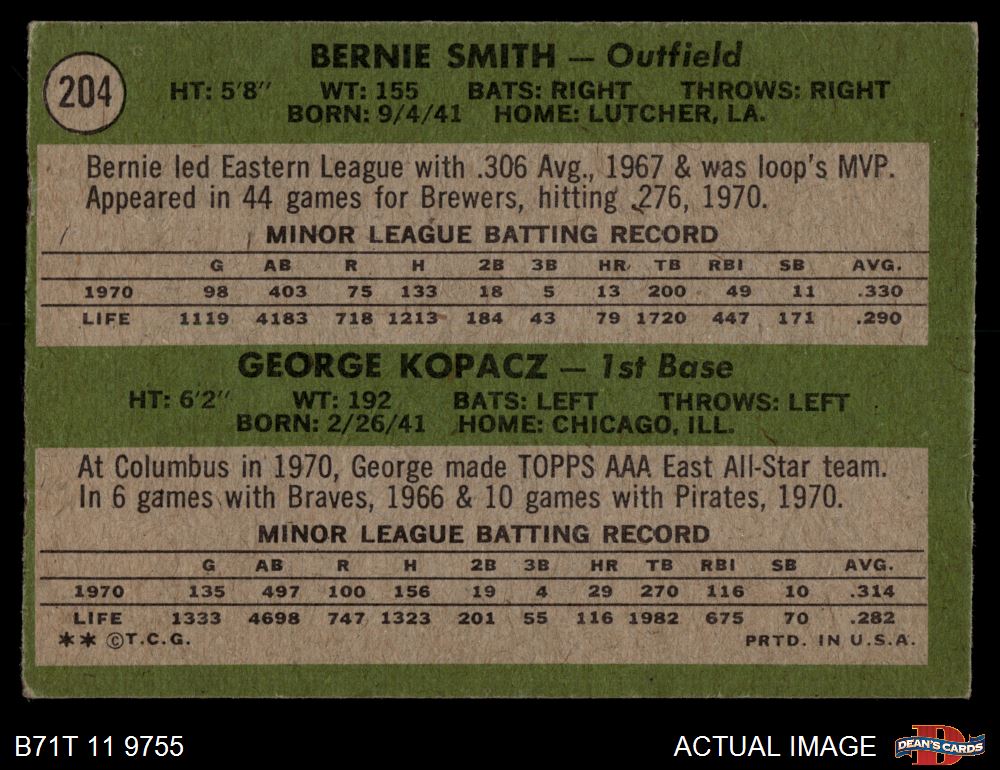 1971 Topps #204 - George Kopacz / Bernie Smith Brewers Rookies 4 - VG/EX
