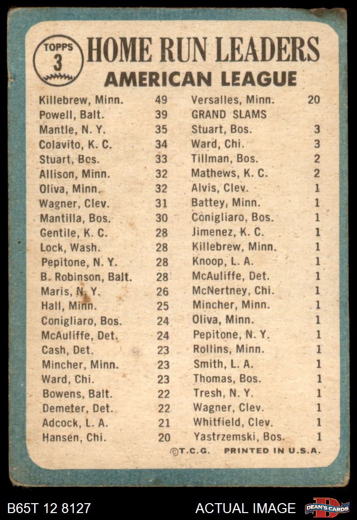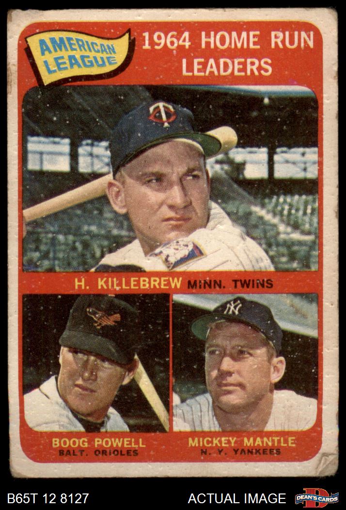 1965 Topps #3 - Mickey Mantle / Harmon Killebrew / Boog Powell AL HR Leaders AUTHENTIC