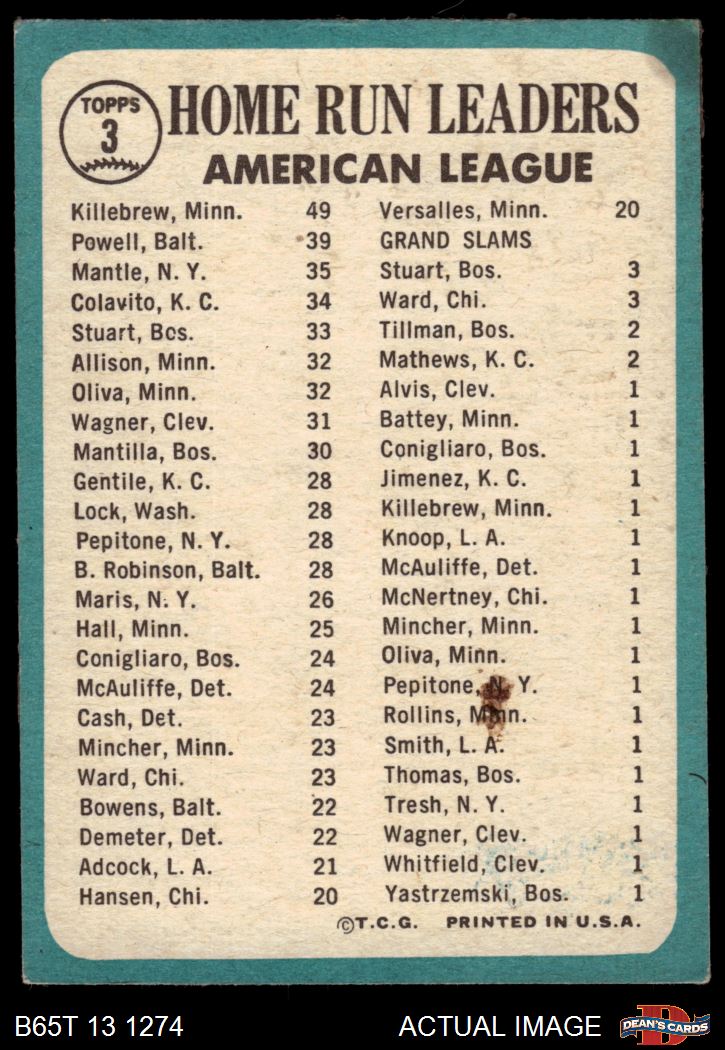 1965 Topps #3 - Mickey Mantle / Harmon Killebrew / Boog Powell AL HR Leaders 1 - POOR