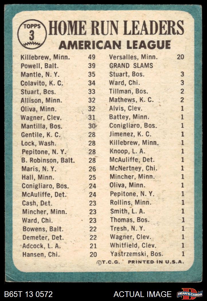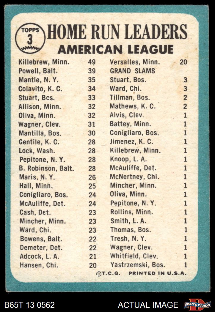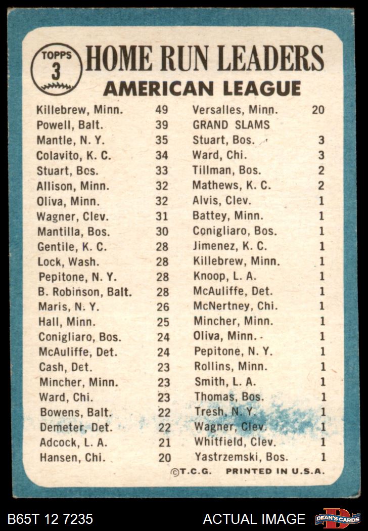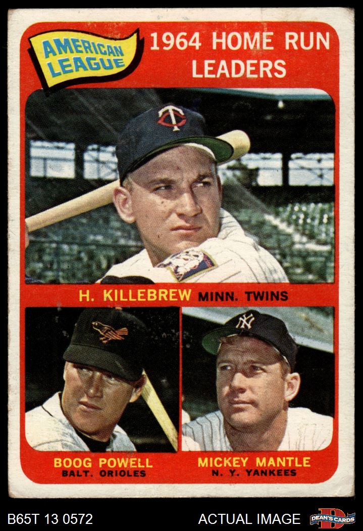 1965 Topps #3 - Mickey Mantle / Harmon Killebrew / Boog Powell AL HR Leaders 2 - GOOD